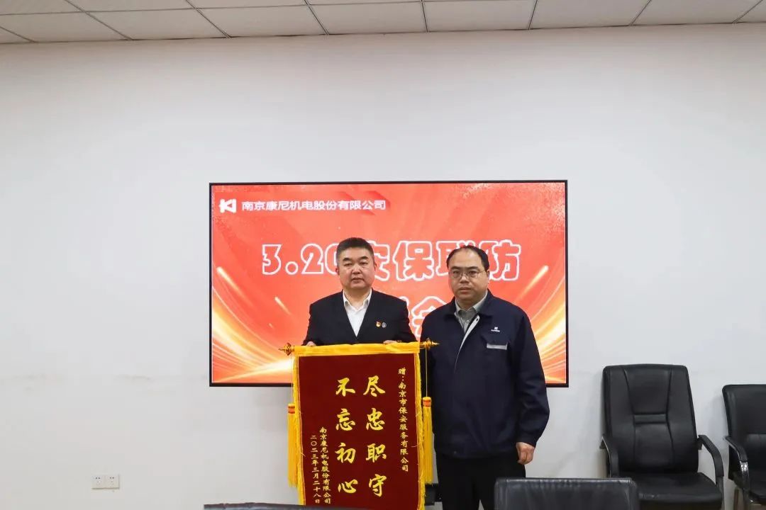 表彰會(huì)由康尼集團(tuán)運(yùn)營保障部高級主管李鳳閣主持。會(huì)上,康尼精機(jī)綜合部尹海軍部長宣讀了對我司的感謝信,手寫的感謝信帶著濃濃的情意和溫暖,字里行間表達(dá)著對我司安保服務(wù)的充分肯定和真摯謝意??的峒瘓F(tuán)運(yùn)營保障部方偉國部長宣讀了獎(jiǎng)勵(lì)決定,對勇擒竊賊事件中南京保安高度警惕、認(rèn)真負(fù)責(zé)的工作態(tài)度,和敢于亮劍、善于亮劍的擔(dān)當(dāng)精神予以了高度贊譽(yù),向受表彰的6名保安員頒發(fā)了榮譽(yù)證書和獎(jiǎng)金,向公司授予了“盡忠職守 不忘初心”錦旗2面,以表感謝!